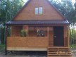 На террасе при условии что она есть делаем перила из строганной доски со всех сторон, столбы террасные также строганные, а не обрезки профилированного бруса с шипом и пазом. Домкратики на столбах для дальнейшей регулировки. Балясины будут сделаны аккуратно. Обратите внимание что в дешёвых случаях это может быть и будет просто вагонка прибирая к неотесанной доске снаружи и столбы будут не квадратные а просто профилированный брус как на видео.