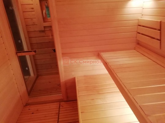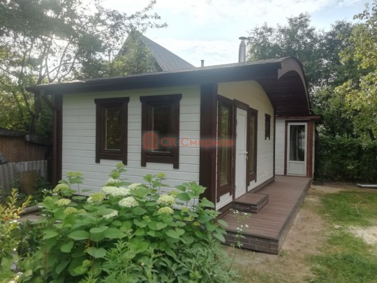 Для строительства красивой бани 3.5х5.3 метров СК Смирнов разработал проект №289 с обустроенной парной и комнатой отдыха. По планировке общая площадь составляет 18.5 квадратных метров. Можно выделить несколько особенностей проекта: терраса, санузел, панорамные окна. Мы строим бани под ключ с полной отделкой снаружи и внутри.
