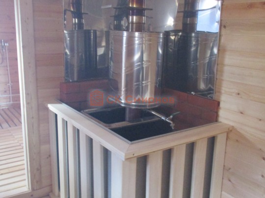 Печь для бани устанавливаем за дополнительную стоимость, любую, у нас есть печные магазины свои и есть доступ практически к любому производителю.
