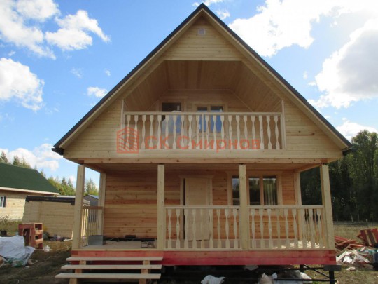 Такая с мансардой баня 6х6 может быть построена из бруса. Ориентировочный срок строительства 17 дней.
