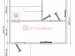 Такая одноэтажная баня 5.5х5 может быть построена из бруса. Ориентировочный срок строительства 12 дней.