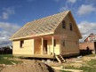 Из профилированного сухого бруса 9х14см, 14х14 см или 14х19 см. Сборка сруба в теплый угол на нагеля или гвозди 200 мм со сверлением отверстия в верхнем брусе (в зависимости от вида бруса).