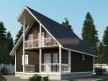 На фото представлен проект надёжного дома №169 габаритами 8х10 метров и отличной планировкой общей площадью 134 квадратных метров. Можно выделить несколько особенностей проекта: терраса, балкон, веранда, туалет, ванная, санузел. Объект с мансардой, может использоваться как зимний, для постоянного проживания, коттедж.