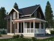 На фото представлен проект загородного дома №172 габаритами 7х7.5 метров и отличной планировкой общей площадью 126 квадратных метров. Можно выделить несколько особенностей проекта: терраса, эркер, панорамные окна. Особняк с мансардой, может использоваться как зимний, для постоянного проживания, коттедж.
