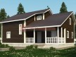 На фото представлен проект аккуратного дома №179 габаритами 9х12 метров и отличной планировкой общей площадью 198 квадратных метров. Сруб с мансардой, может использоваться как зимний, для постоянного проживания, коттедж.