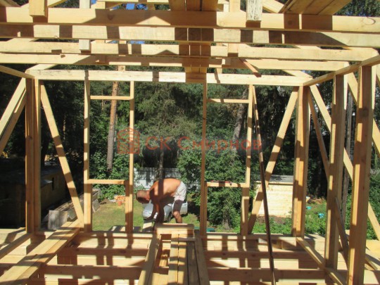 Потолки, стены вансардного каркасного этажа ( если он есть ) обшиваются сухой вагонкой.