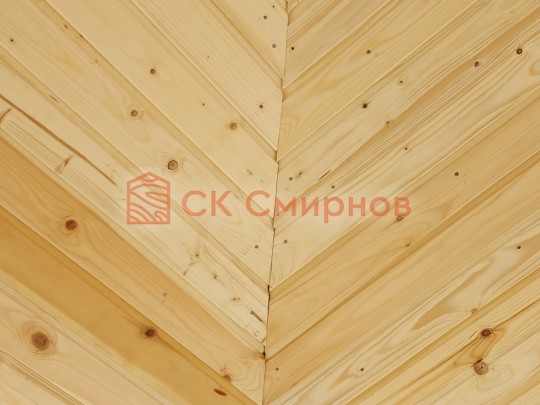 Потолки, стены вансардного каркасного этажа ( если он есть ) обшиваются сухой вагонкой.