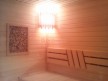 Комплектация очень хорошая, но конкретно в бане с фотографии были заказаны дополнительные опции: стеклянные межкомнатные двери, светильники в парной, панно из можжевельника, декоративная спинка полога. В душевой комнате под трапиком во всю площадь помещения установлен пластиковый поддон со сливным отверстием — можно плескаться, как душа пожелает. Сауна обшита беленькой бессучковой осиновой вагонкой, а все поверхности аккуратно зашлифованы. Печь огорожена защитным коробом. Мы тщательно следим за безопасностью бань нашего производства и до мелочей соблюдаем правила пожаробезопасности при монтаже печного оборудования.