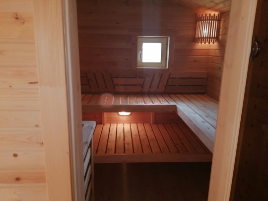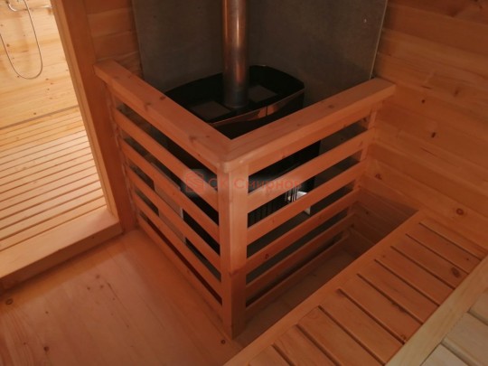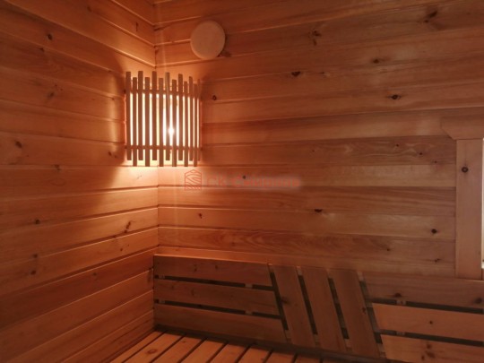 Такие бани в VIP комплектации отличает особый подход. Сборка осуществляется на участке с предельным вниманием к деталям: пологи в парной украшаются декоративной спинкой, вешаем уличные светильники, люстру в комнату отдыха, уютные абажуры в сауну. В помывочной во весь пол положен пластиковый поддон. Поставлены стеклянные двери, которые не деформируются от жары и воды.