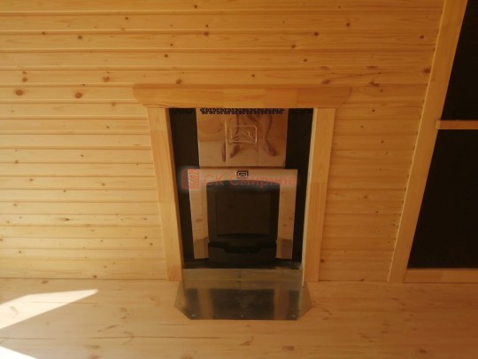 В этой серии бань делается электропроводка открытая, выключатели, светильники, розетки.