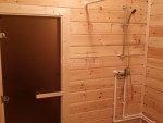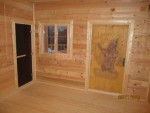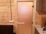 В брусовые бани из сухого или клееного материала можно и наверное нужно ставить стеклянные двери, они есть прозрачные с бронзовым отливом и матовые ( немного дороже )